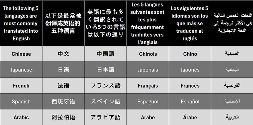 Thus, if you are interested in expanding your operations, consider engaging a translation services in Singapore to communicate with the following five most translated languages in today’s digital space.